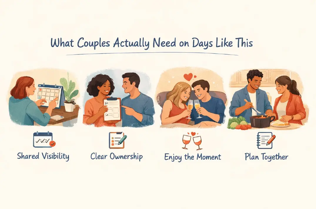 Romantic days don’t plan themselves. They’re stitched together through dozens of tiny decisions — remembering, coordinating, adjusting, anticipating.